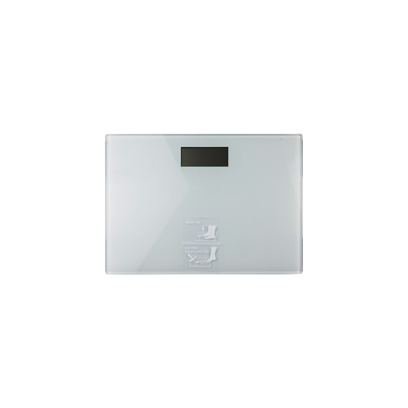 Información del producto: Báscula de baño digital color blanco de 30.2 cm de largo x 21 cm de ancho x 2.1 cm de alto, fabricado en vidrio templado.