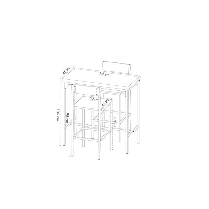 2 Sillas: 41 cm de largo x 39 cm de ancho x 95 cm de alto.