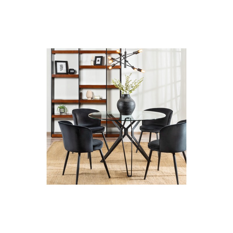 Información del producto: Mesa de comedor Lubeck disponible en color negro de 110 cm de diámetro x 75 cm fabricado en acero y vidrio.