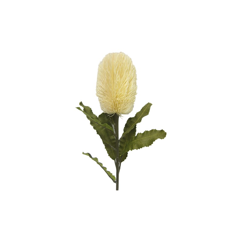 Información del producto: Flor artificial Banksia color blanco de 65 cm de largo x 16 cm de ancho x 15 cm de alto, fabricado en plástico, poliéster y alambre. Política de Envío: El tiempo de entrega es de 5 a 10 días hábiles.
