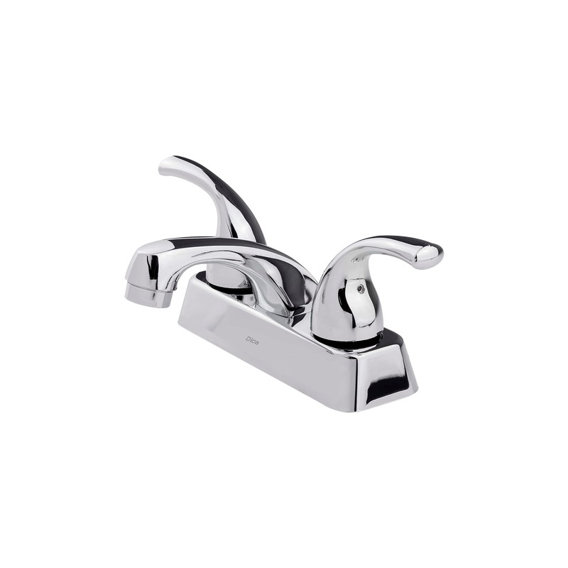 Mezcladora para lavabo ecológica de 4? con acabado en plateado de 23 cm de largo x 13 cm de ancho x 9.5 cm de alto,, fabricado con ABS. con cubierta y manerales, cartucho plástico pom, conexión ½” NPS. Presión mínima de 0.25 KG/CM2.