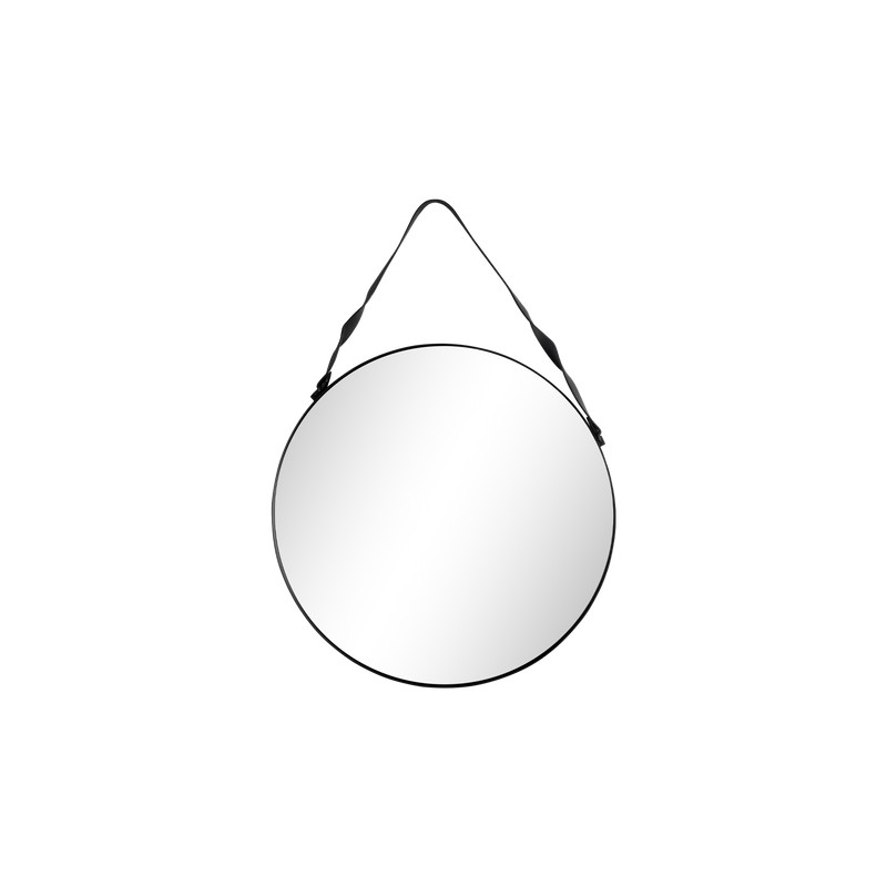 Información del producto: Espejo con correa marco color negro de 60 cm de diámetro x 3 cm de alto, fabricado en vidrio, metal y poliuretano. Política de Envío: El tiempo de entrega es de 5 a 10 días hábiles.