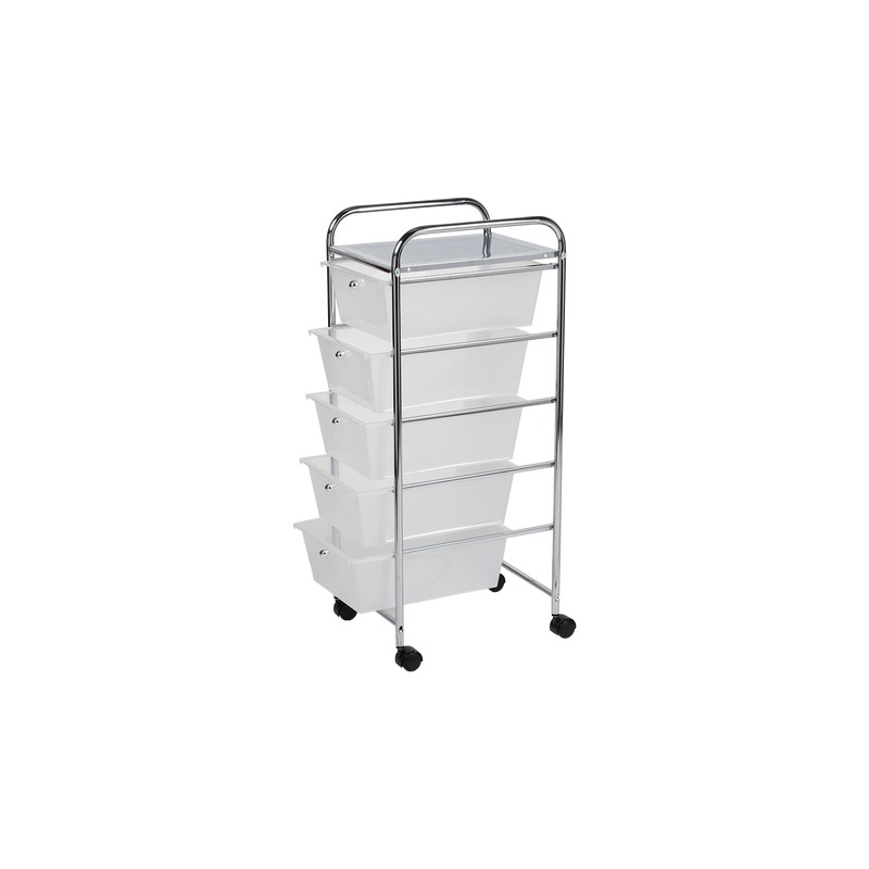Información del producto: Carrito organizador Tenerife color plata con blanco de 32.5 cm de largo x 37 cm de ancho x 87 cm de alto, fabricado en hierro y plástico. Política de Envío: El tiempo de entrega es de 5 a 10 días hábiles.