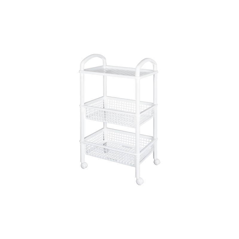 Información del producto: Carro organizador 3 charolas con ruedas color blanco de 40 x 31 x 73 cm fabricado en plástico.
