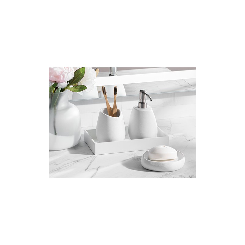 Información del producto: Dispensador Mallorca color blanco de 10.1 cm de diámetro x 17 cm de alto, fabricado en cerámica.
