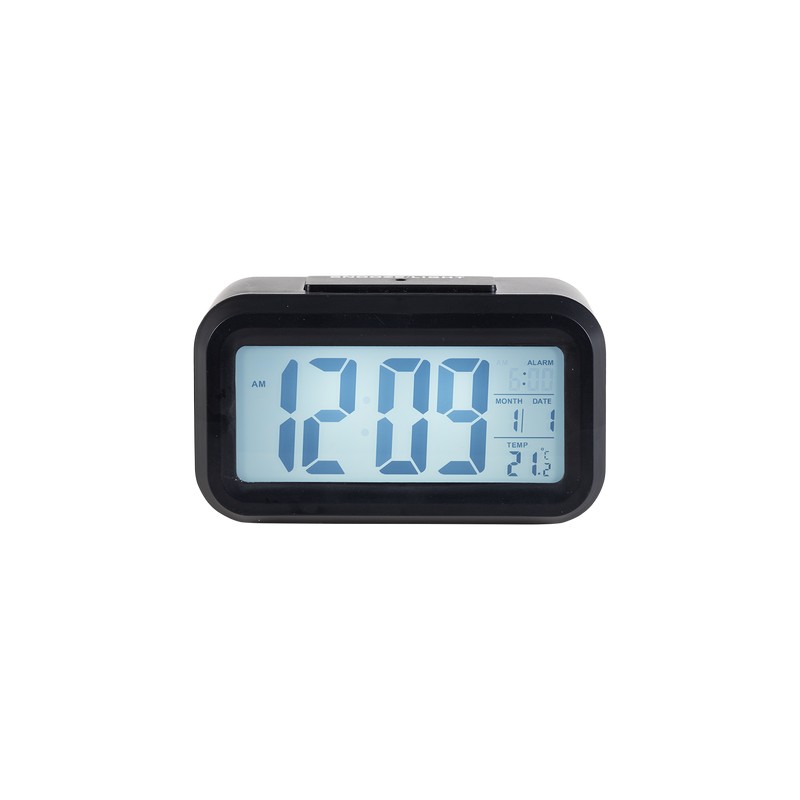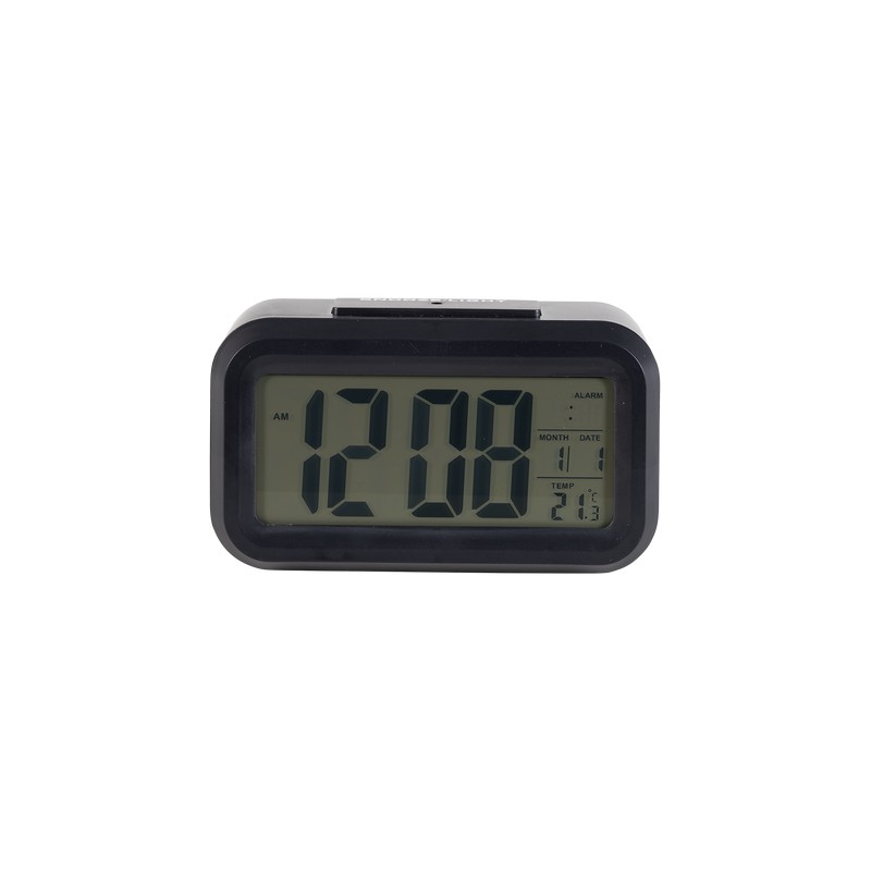 Información del producto: Reloj digital color negro de 15 cm de largo x 4.5 cm de ancho x 4.5 cm de alto, fabricado en plástico y lcd.