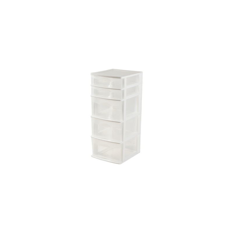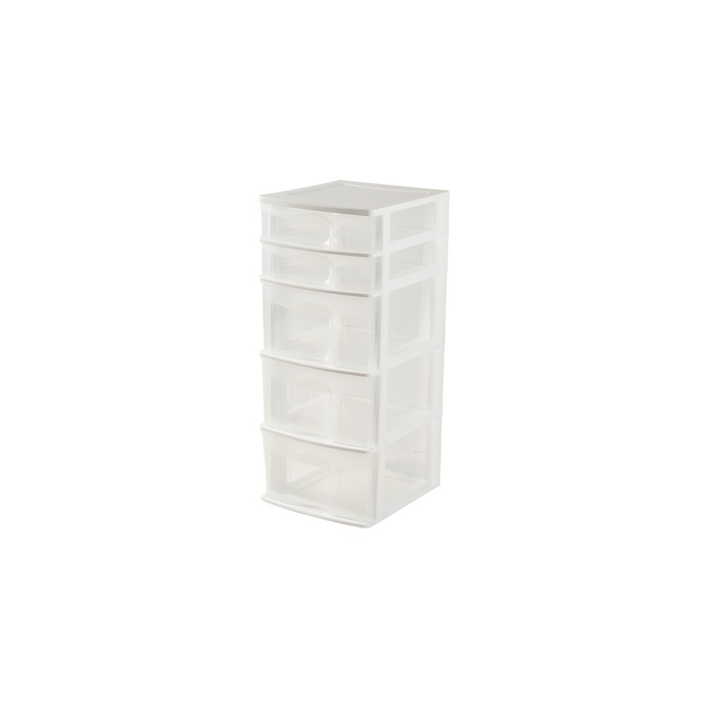 Información del producto: Cajonera con 5 cajones color blanco de 33.3 cm de largo x 37 cm de ancho x 79 cm de alto, fabricado en plástico. Política de Envío: El tiempo de entrega es de 5 a 10 días hábiles.