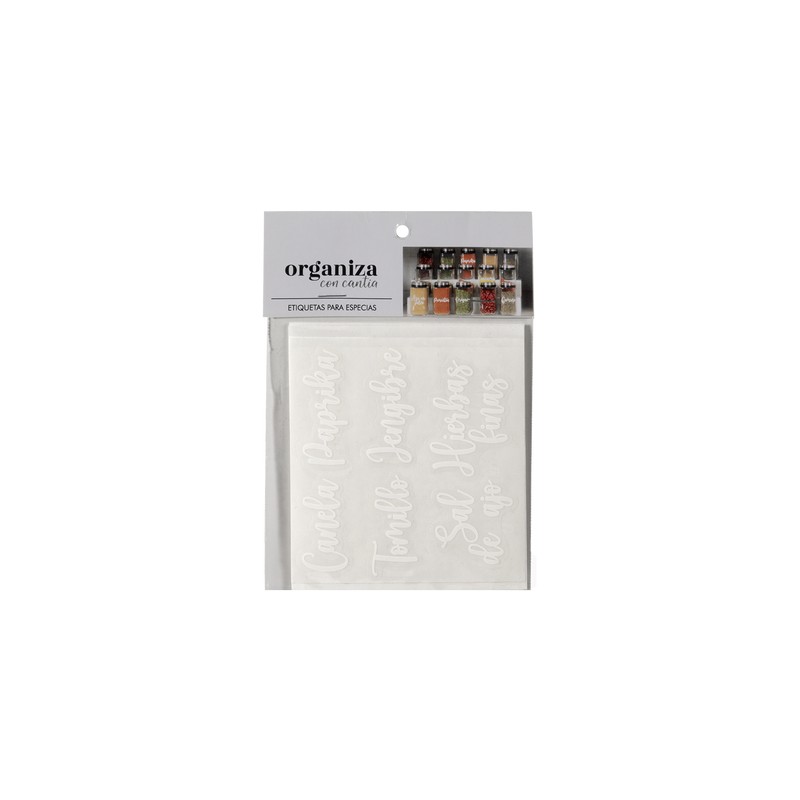 Información del producto: Etiquetas de especias color blanco de 13 x 11 cm fabricado en vinil.