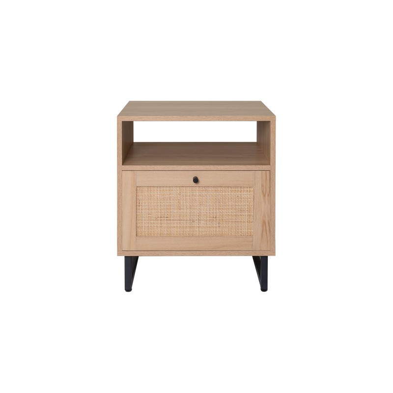 Información del producto: Buró Rimini diseñado en acabado natural de 48 cm de largo x 40 cm de ancho x 55 cm de alto, fabricado en melamina y pvc. Política de Envío: El tiempo de entrega es de 5 a 10 días hábiles.