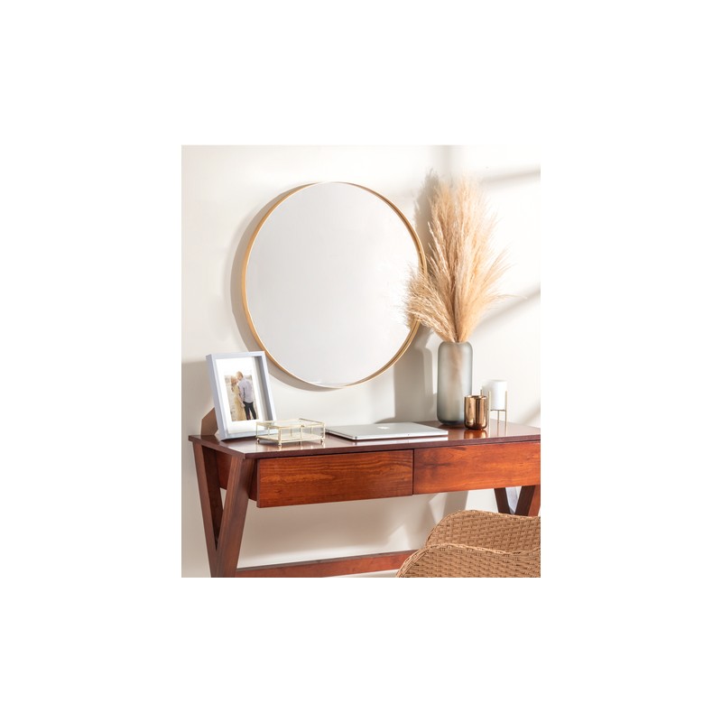 Los muebles se envían desarmados. Incluye instructivo y tornillería, contáctanos si deseas asesoría en el armado.,Información del producto: Espejo circular disponible en color dorado de 50 de diametro x 0.5 cm de alto, fabricado en metal y vidrio.