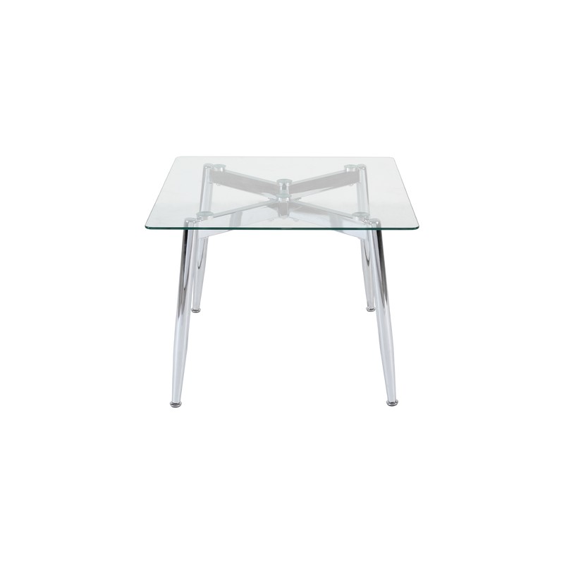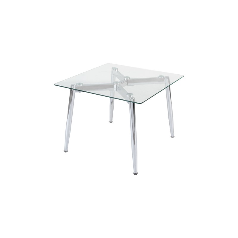 Información del producto: Mesa merlo con acabado cromo, fabricada en vidrio templado y metal.