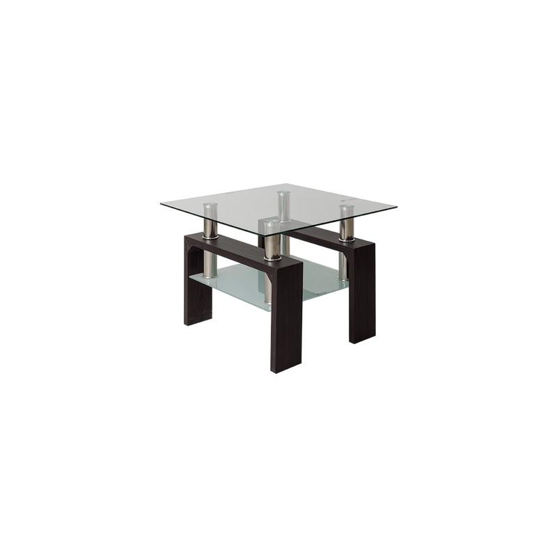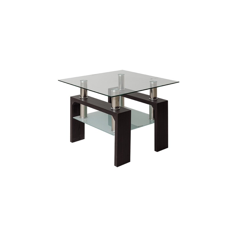 Mesa de lateral Copala está fabricada en vidrio templado con patas de mdf de 60 x 60 x 42 cm.
