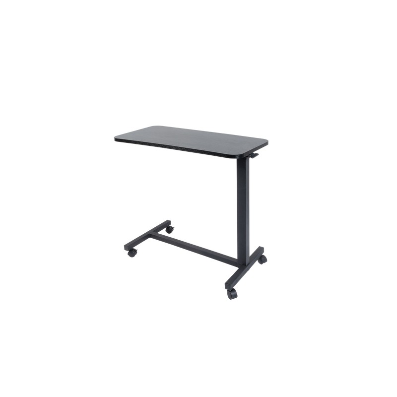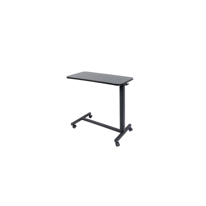 Información del producto: Mesa Auxiliar ajustable diseñada en un acabado negro de 76 cm de largo x 38 cm de ancho x 71-110 cm de alto, fabricado en aglomerado, melamina y acero.