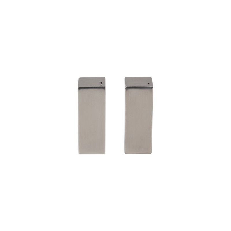 Información del producto: Set de salero y pimientero Halton color plata de 3 c de largo x 3 cm de ancho x 8 cm de alto, fabricado en acero inoxidable. Política de Envío: El tiempo de entrega es de 5 a 10 días hábiles.