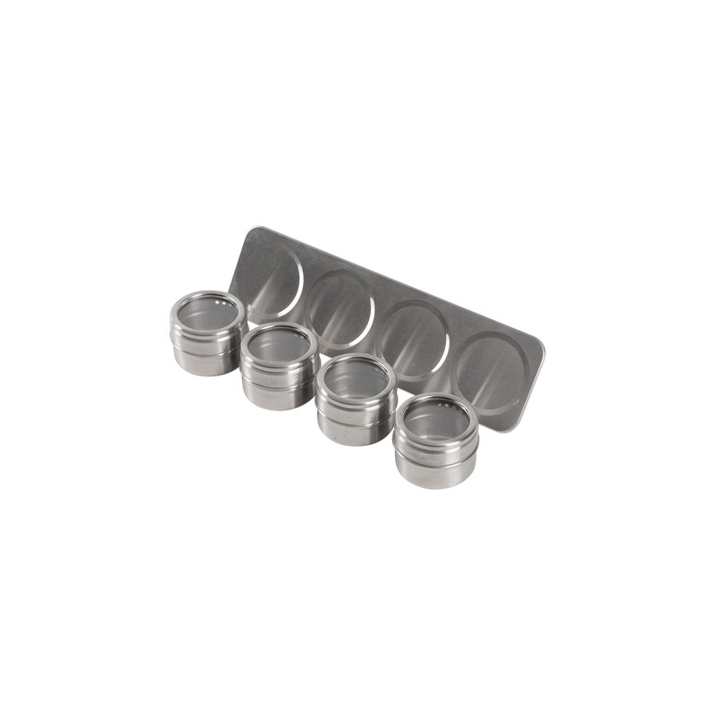 Información del producto: Set de 4 Especieros magnéticos color plata de 29.5 x 8.2 x 5.2 cm fabricados en plástico e iman.