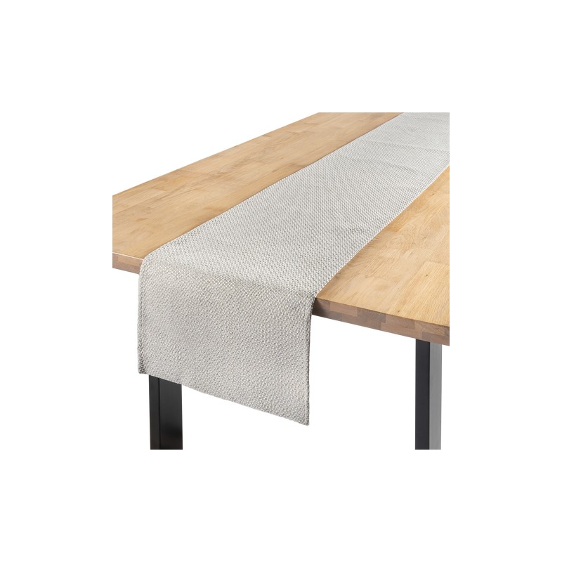Información del producto: Camino de mesa tamaño mediano "MED" color gris de 38 x 230 cm fabricado en poliéster. Política de Envío: El tiempo de entrega es de 5 a 10 días hábiles.