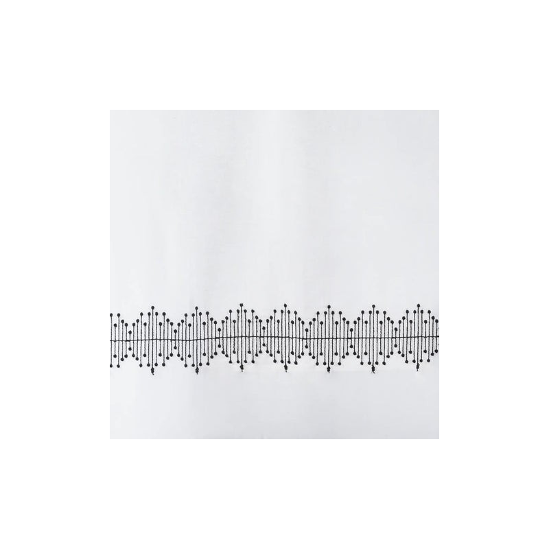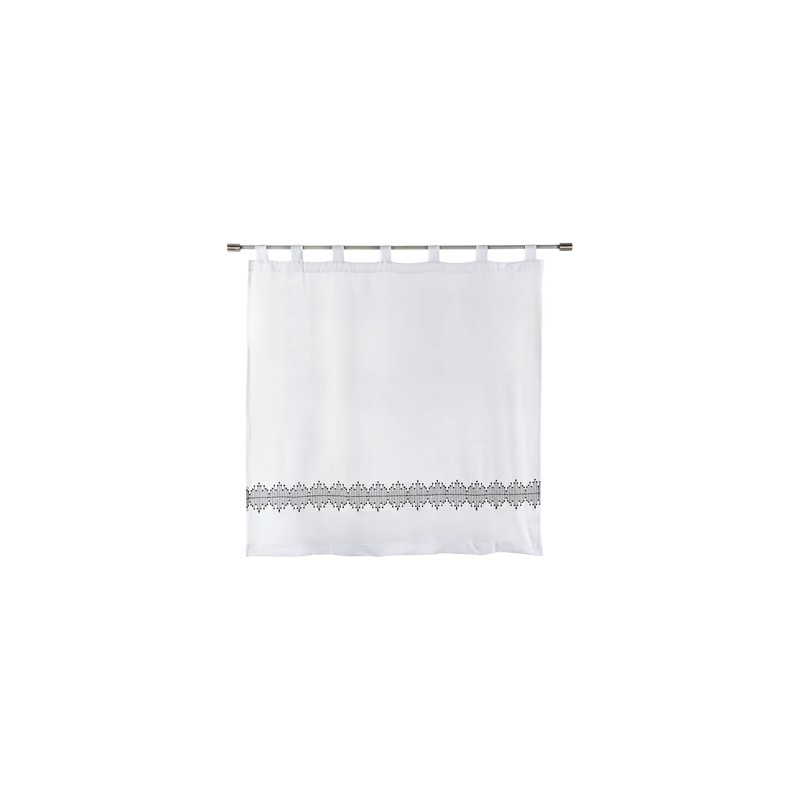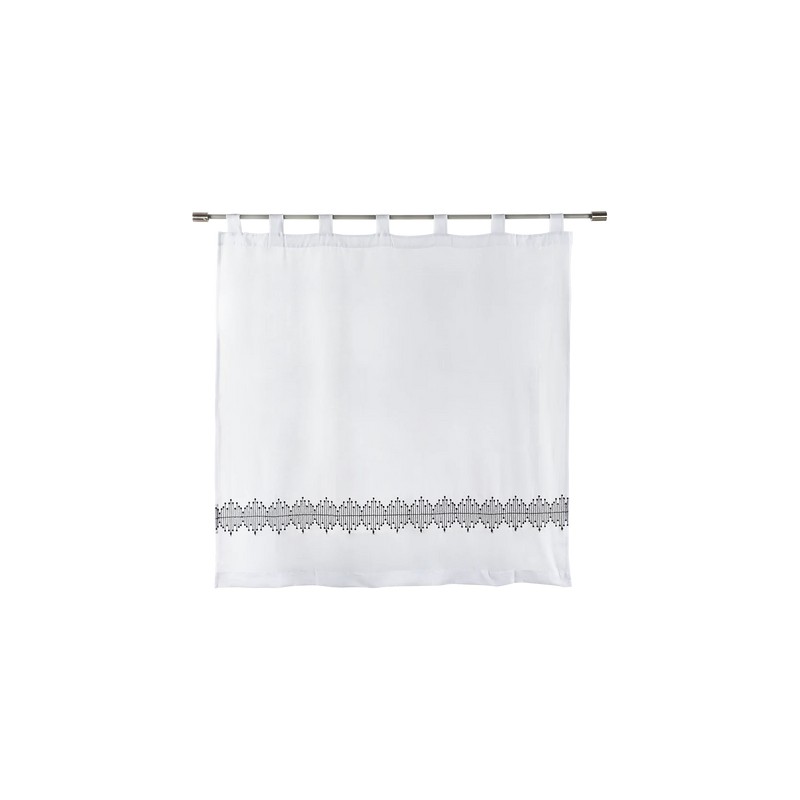Información del producto: Cortina tipo "D" Katan diseñada en color blanco con hilo bordado color negro de 120 cm de largo x 120 cm de ancho, fabricada en 50% poliéster y 50% algodón.