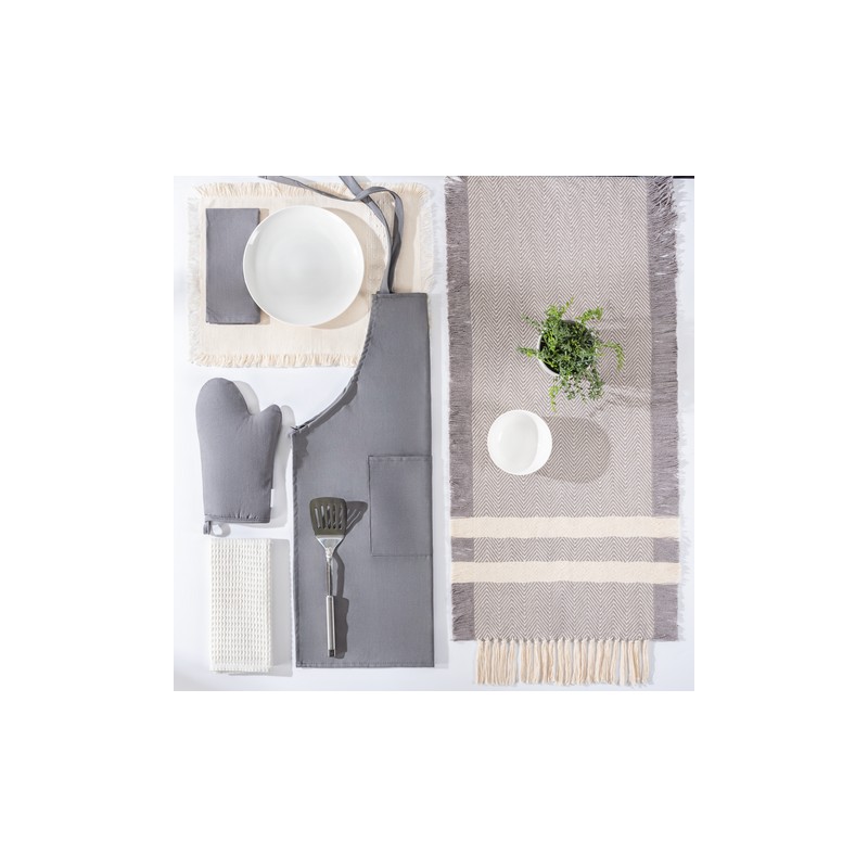 Información del producto: Mandil Shari disponible en color gris de 83 cm de largo x 60 cm de ancho, fabricado en poliéster y algodón Política de Envío: El tiempo de entrega es de 5 a 10 días hábiles.