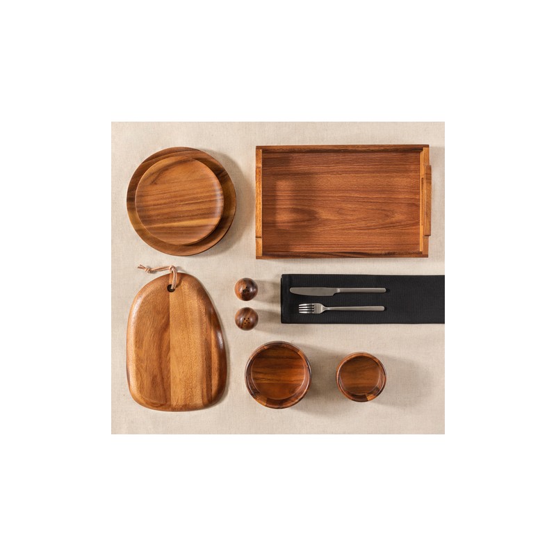 Información del producto: Plato trinche Acacia disponible en color café de 25.5 x 1.5 cm fabricado en madera