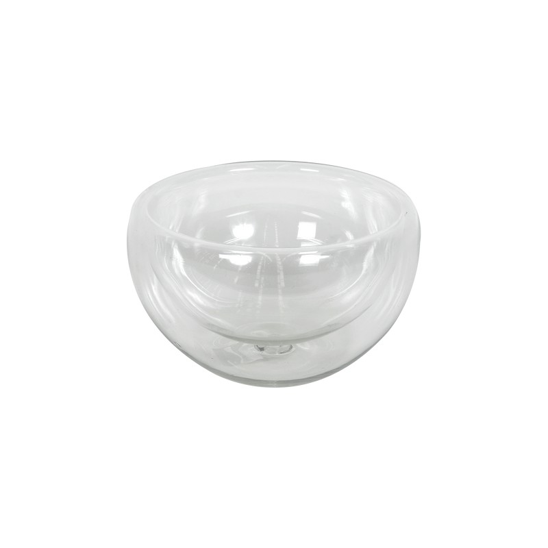 Información del producto: Tazón doble transparente de 25 cm de diámetro x 15 cm de alto, fabricado en vidrio. Política de Envío: El tiempo de entrega es de 5 a 10 días hábiles.